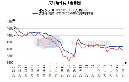 Цената напоцинковани стоманени плочив Тиендзин е предимно стабилен. Според данните от мониторинга на Lange Steel Cloud Business Platform текущата цена на поцинковани стоманени плочи 1,0 mm*1250*C е: Xintian Steel Thin Plate 4080 юана, Tianjin Xinyu 4000 юана, включително данък.